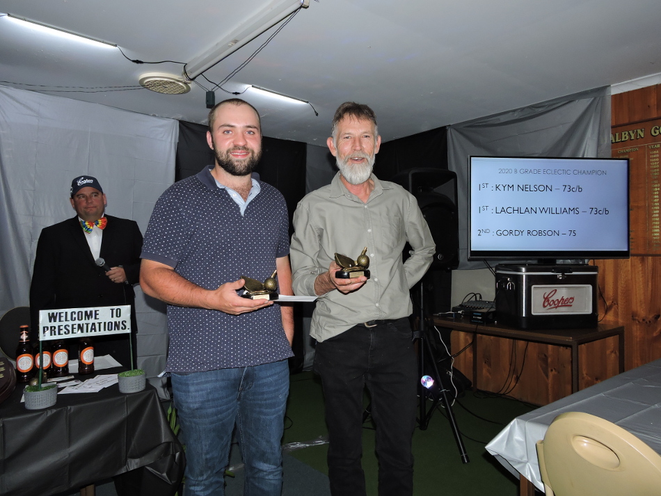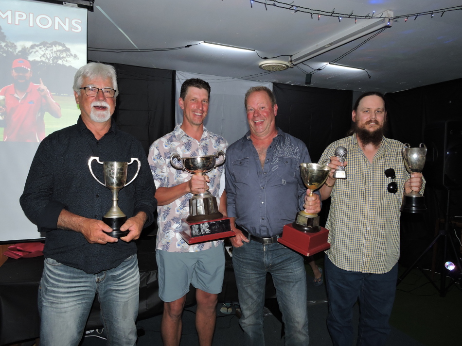 2020 Champions - Randall Pitt(Veterans), Andrew Hentschke(A Grade), Jamie McPhee(B Grade) and Kooka(C Grade) Formby Shield Winner - Kym Nelson with Tim Formby A Grade Eclectic Champion - Andrew Hentschke Joint B Grade Eclectic Champions - Lachlan Williams and Kym Nelson Captains Cup Champion - Chris Barker A Grade Foursomes Champion - Garieth Pitt (absent Donal MacAuley) B Grade Foursomes Champion - Lachlan Williams (absent Ryan Carpenter) Putting Champion - Andrew Hentschke |
